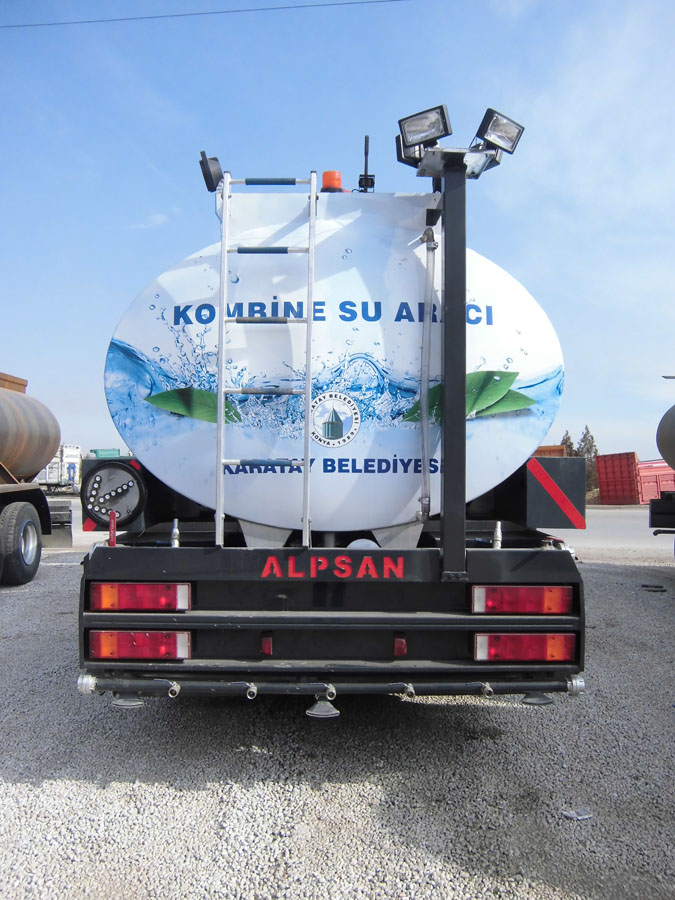 İçme ya da kullanma suyunun taşınmasında kullanılan ekipmanlardır. Uygulandığı aracın taşıma kapasitesine bağlı olarak çok değişik kapasitelerde üretilmekle beraber, genellikle 20.000 litreye kadar üretimleri yapılmaktadır. Kullanım yerine göre siyah sac ya da paslanmaz çelik olarak imalatları yapılmaktadır. Üretim amacına göre araç önüne ve / ya da arkasına sulama mozulları da yerleştirilebilmektedir.